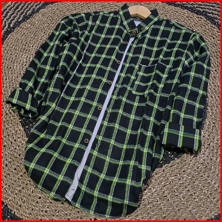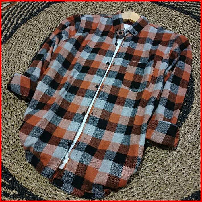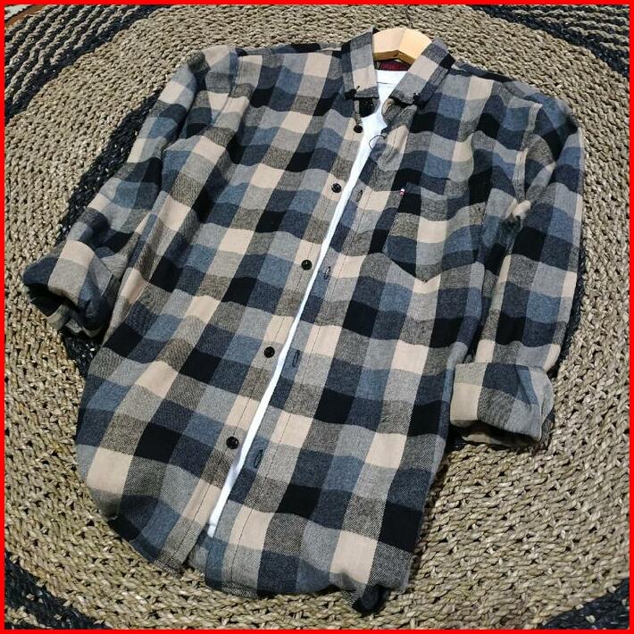 Kemeja Flanel Pria Dan Wanita Unisek Lengan Panjang Distro Baju Kotak Motif Hitam