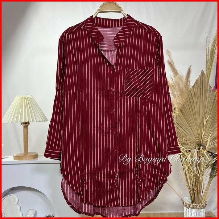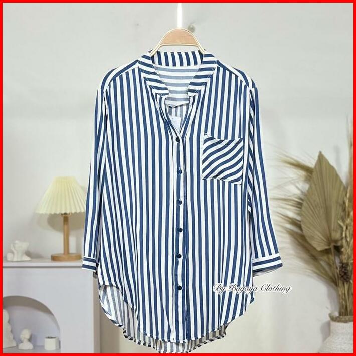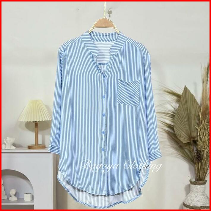 Atasan Wanita Salur Bahan Rayon Premium Blouse Wanita Terbaru Kemeja Rayon Premium Kemeja Rayon Oversized Kemeja Katun R