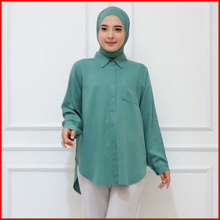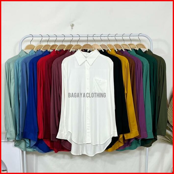 Kemeja Wanita Polos Basic Rayon Twill Model Krah Kemeja