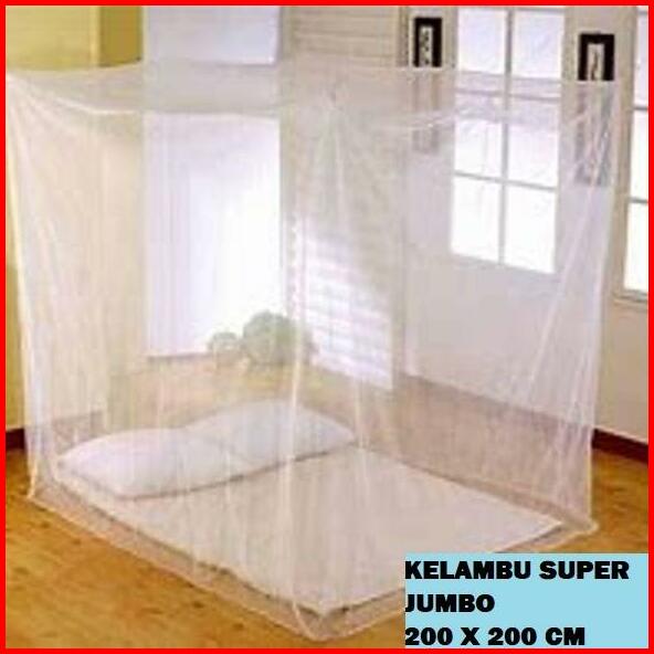 Kelambu Kotak Polos Kelambu Nyamuk Kelambu Kamar Tidur Kelambu Gantung Super Jumbo 200 X 200 Cm Tahan Angin Dicuci Denga