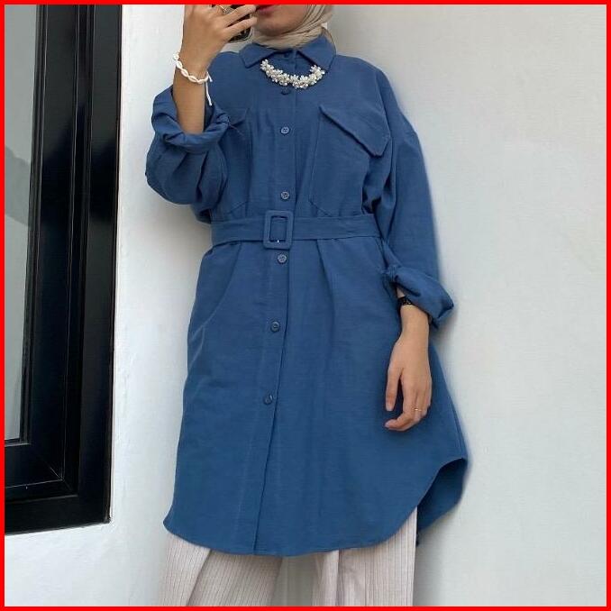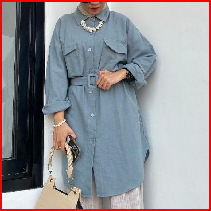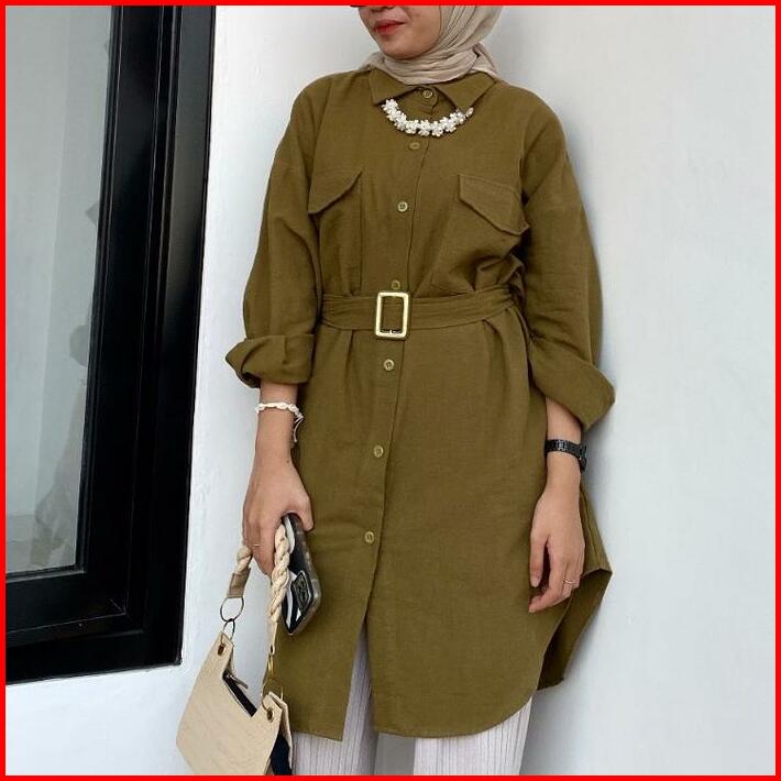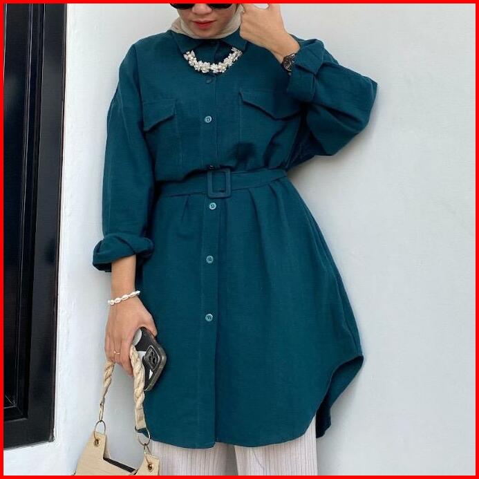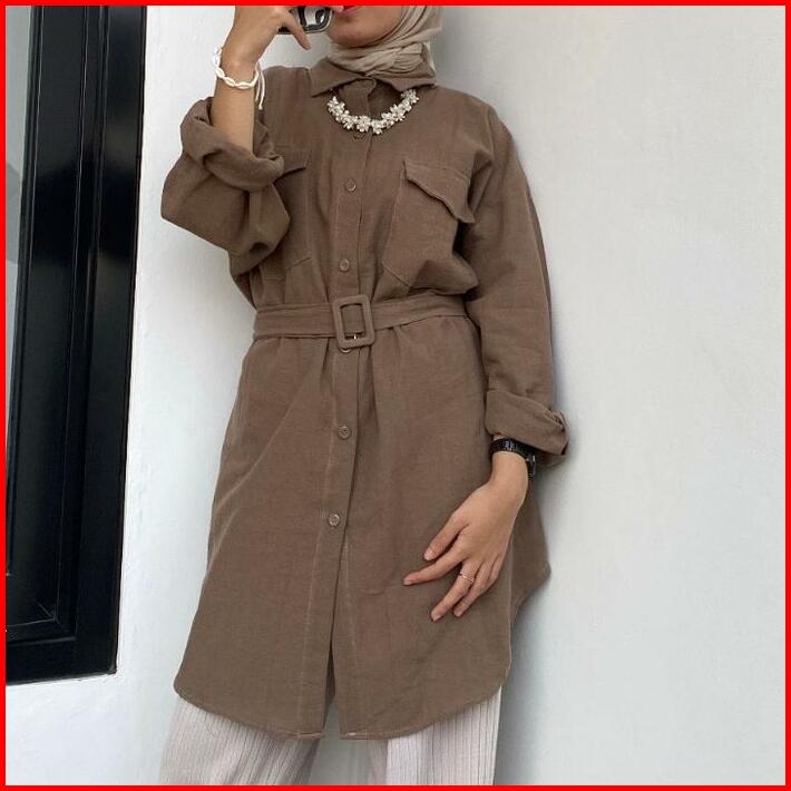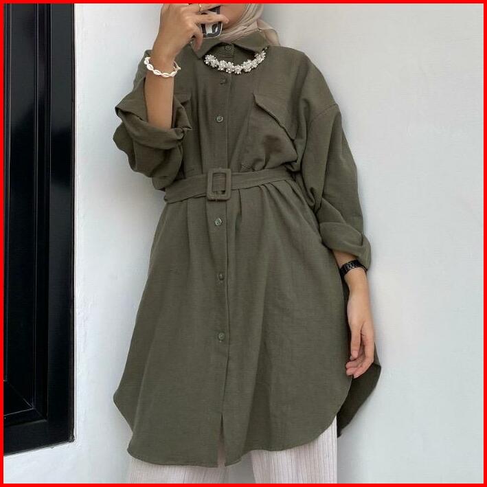 Blouse Tunik Linen Belt Polos