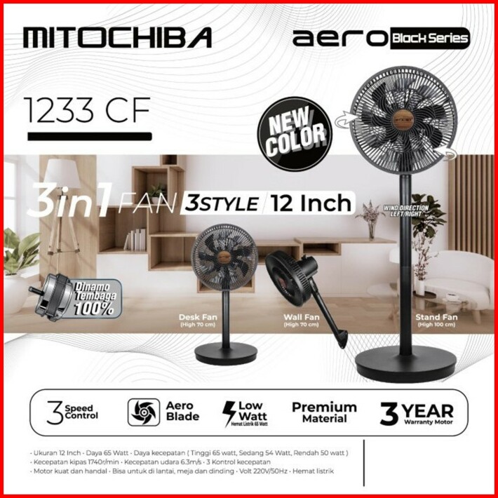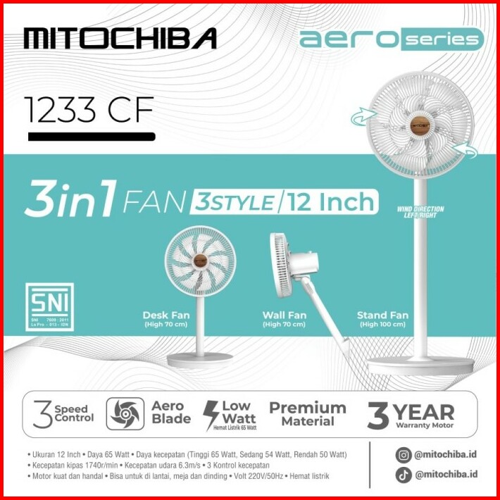 Mitochiba Kipas Angin Multifungsi 3in1 1233cf 12 Inch Aero Series