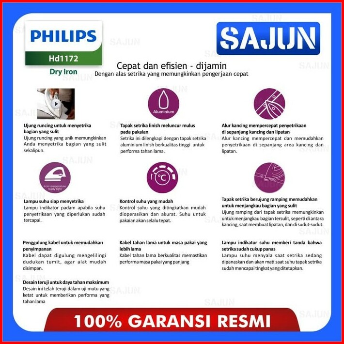 Setrika Philips Hd1172 Ceramic Coating 2 X Durable Philip Hd 1172