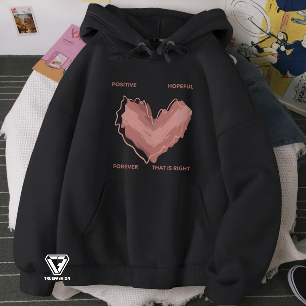 TF - HOPEFUL FOREVER LOVE Hoodie Remaja Korean Style Lucu Bahan Fleece