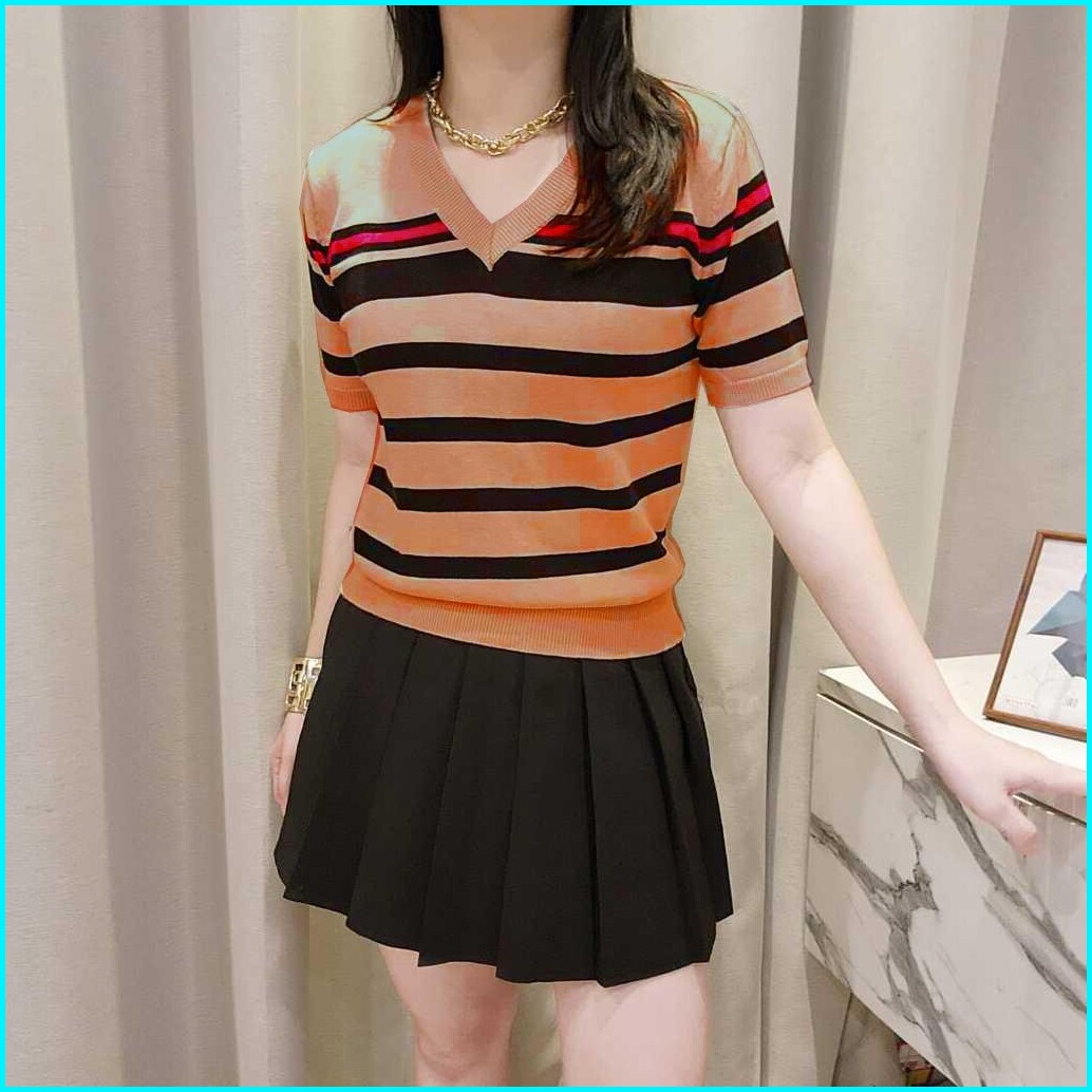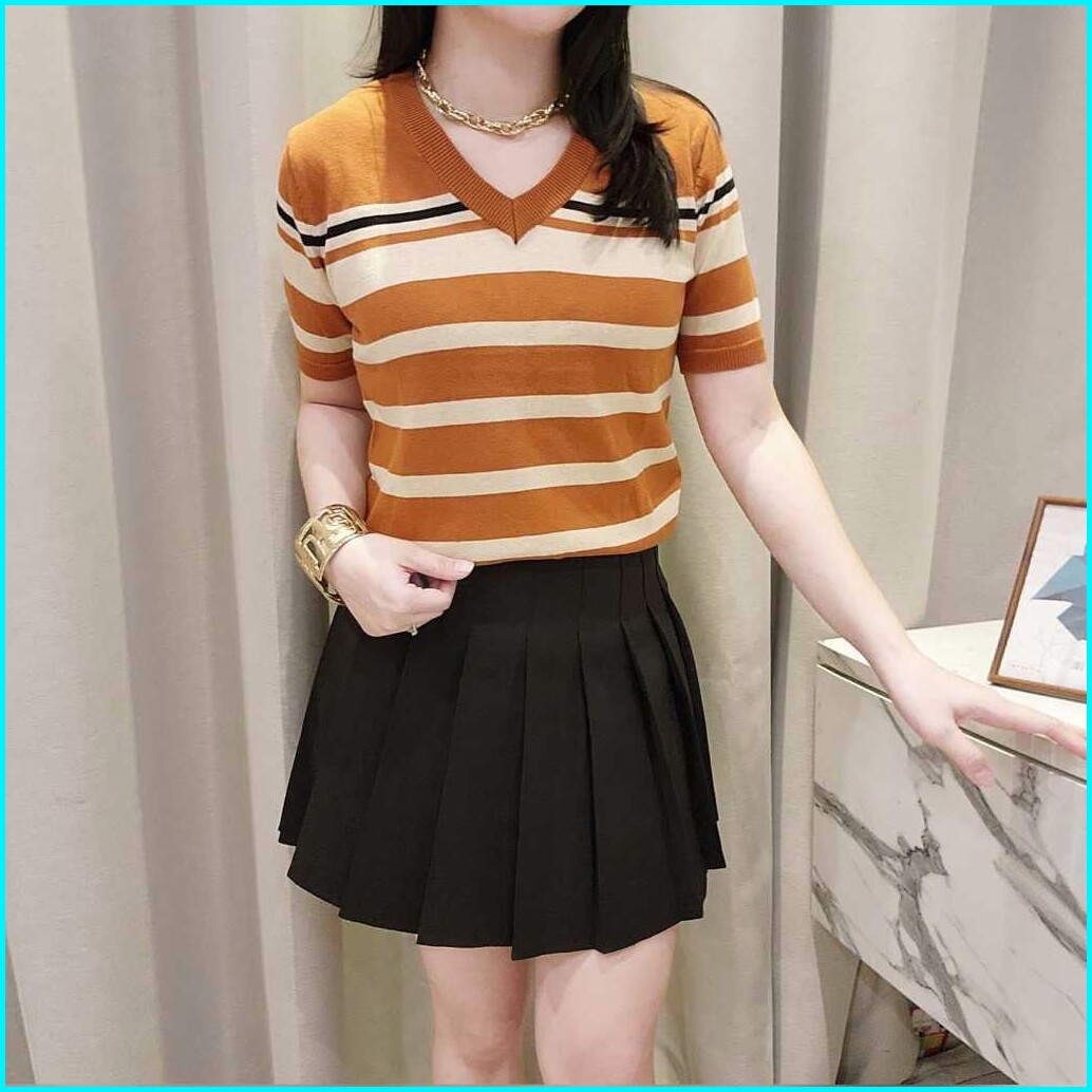 Tokomilkan Atasan Wanita Vente Top Strip Rajut Premium Korean Terbaru