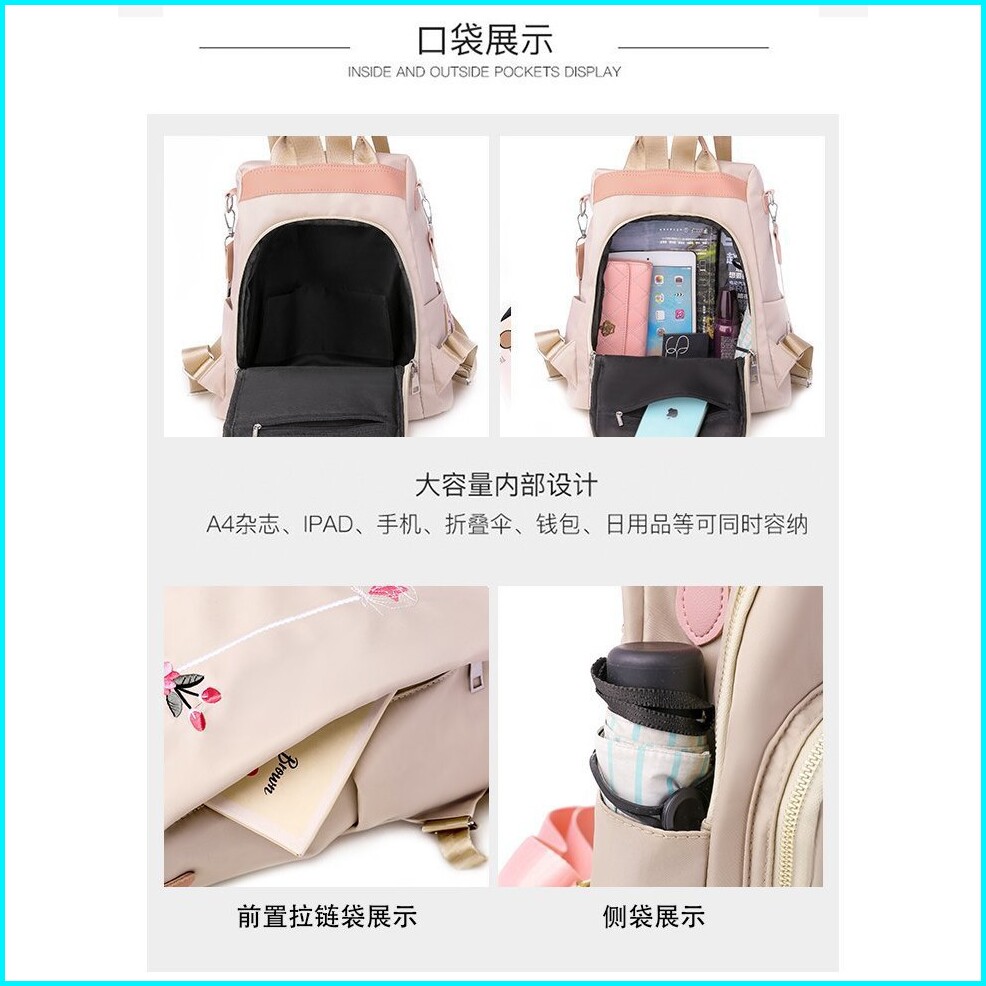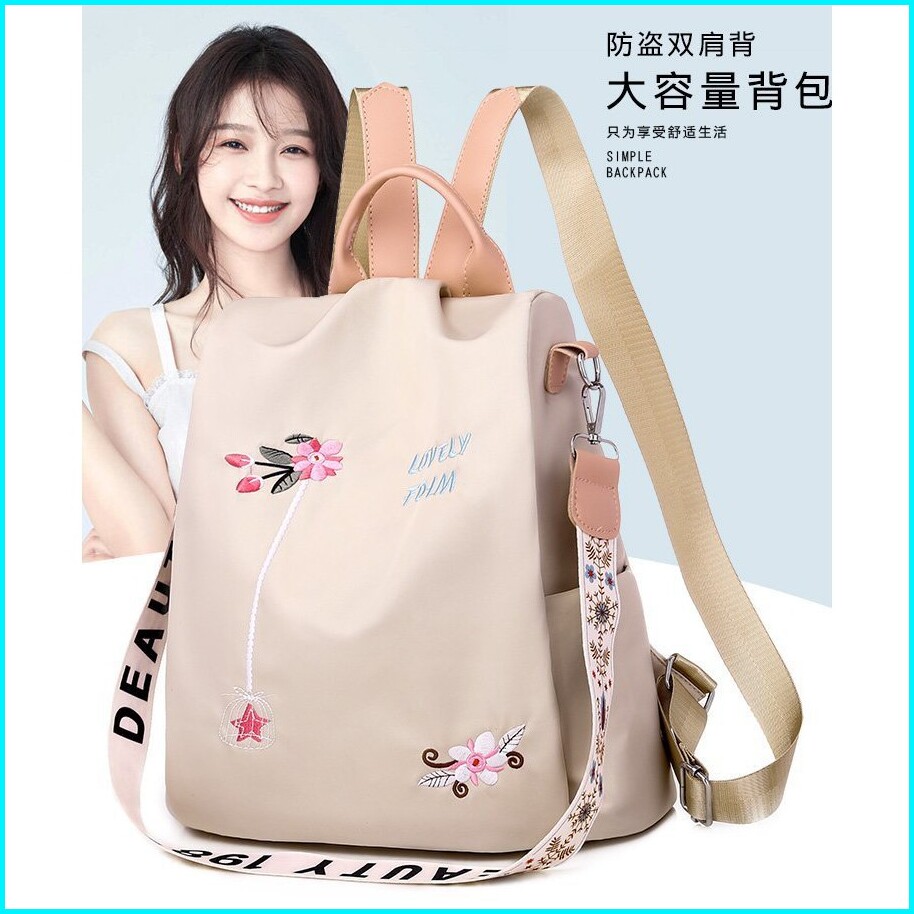 Tas Ransel Wanita Anti Air Beliza Ta229c3 Fashion Coklat Krem Korea Premium Murah Kerja Ori