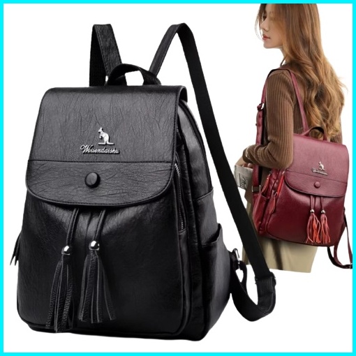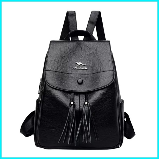 Pennayos Tas Punggung Kasual Wanita - Backpack Women Casual Berkapasitas Besar - Hitam Tas Ransel Kulit Wanita Tas Ranse