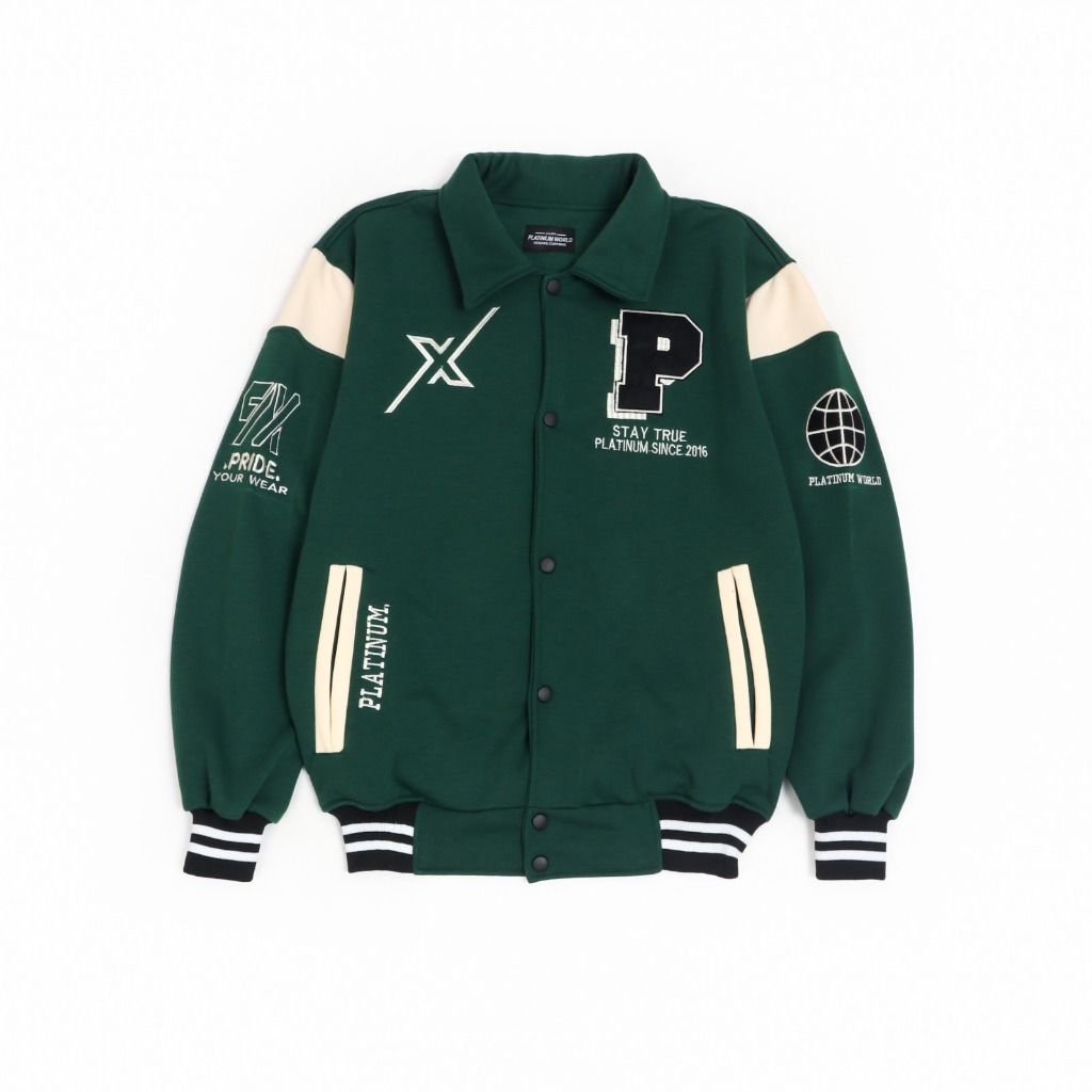 PLATINUM WORLD Jacket Varsity Full Bordir Outerwear Varsity Jacket Baseball East Team Fleece Black RV