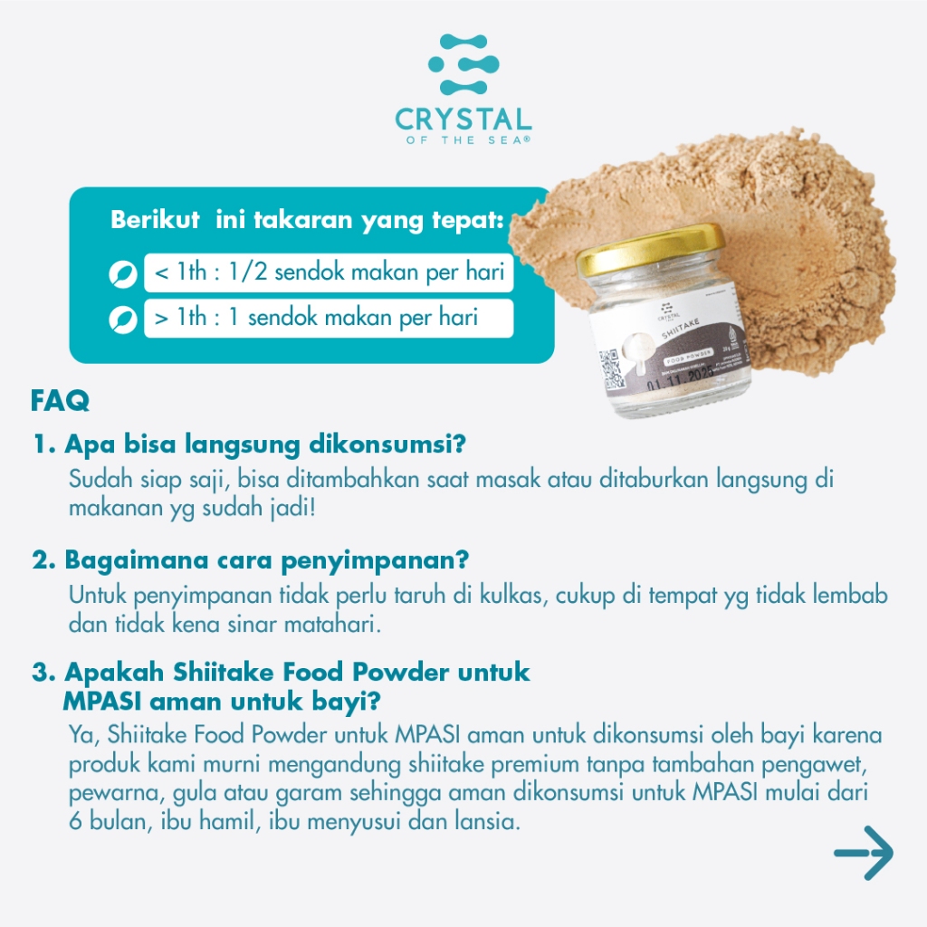 Crystal Farm - Shiitake Food Powder 80gr - 20gr / Mushroom Powder / Bubuk Kaldu Jamur Shiitake MPASI - Bumbu Tabur Gizi