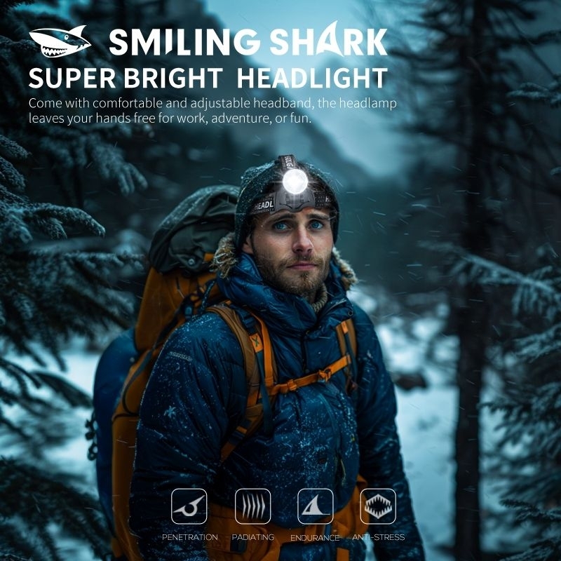 SENTER KEPALA LED SMILING SHARK TD-8030C M77 - 2 CAHAYA KUNING & PUTIH - SENSOR GERAK - E ZOOM