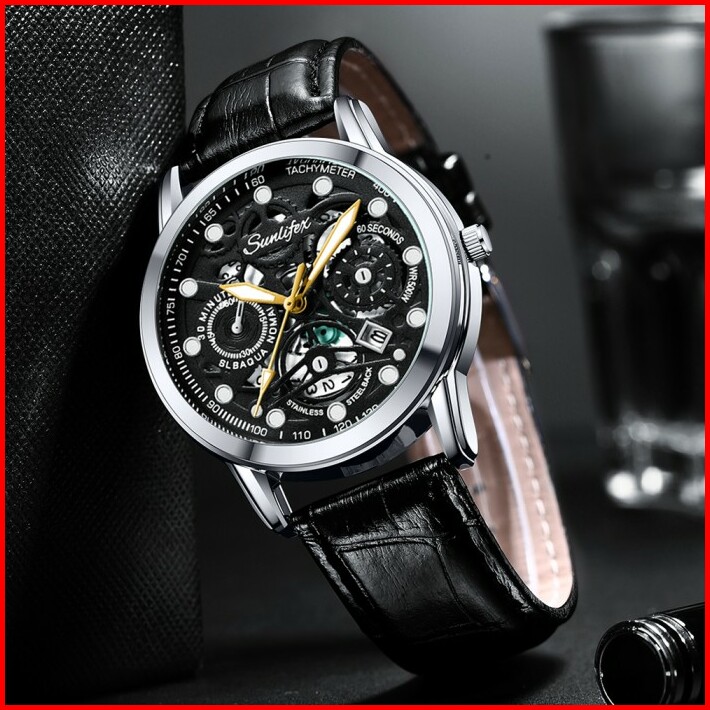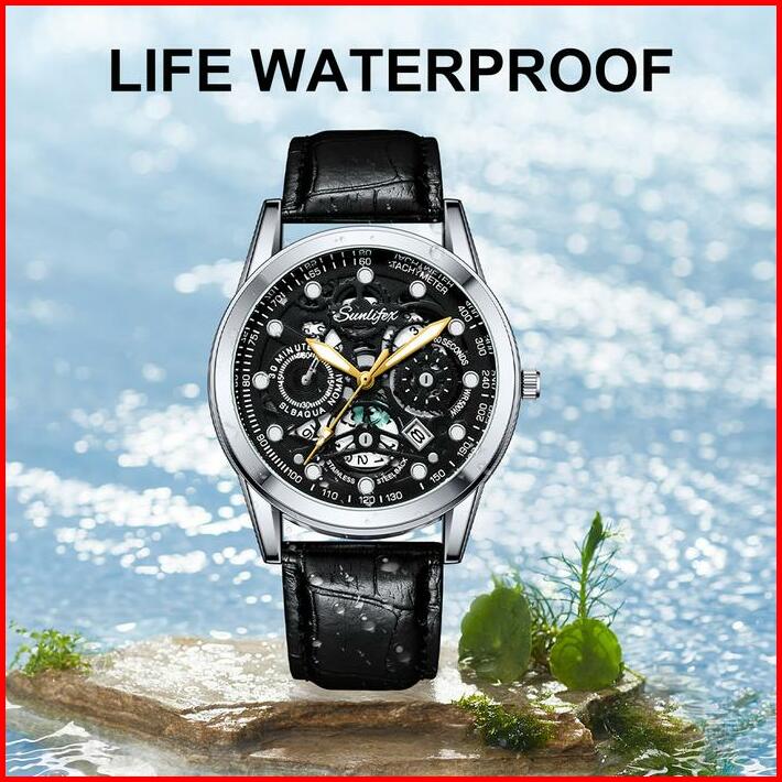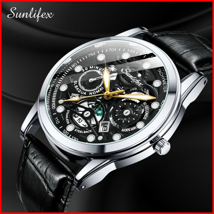 Sunlifex Jam Tangan Pria Asli Tali Kulit Bercahaya Jam Tangan Cowok Anti Air Watches