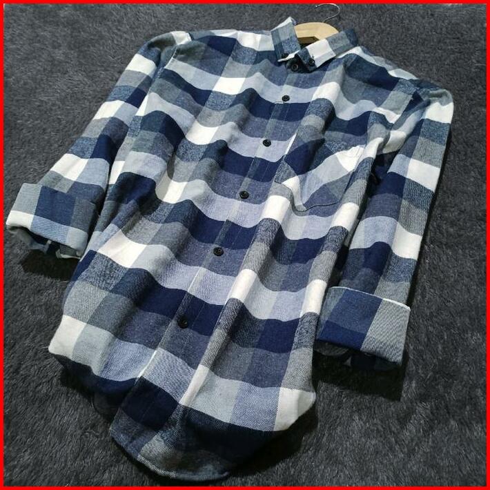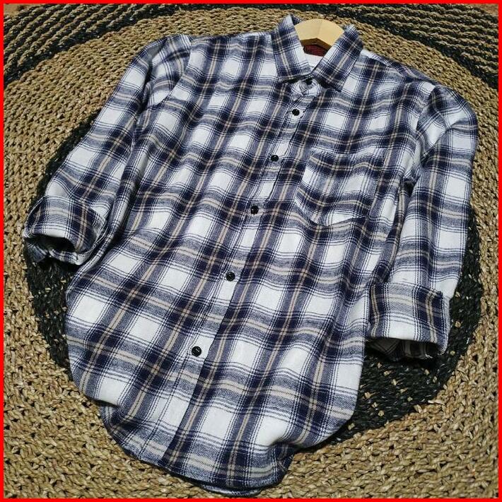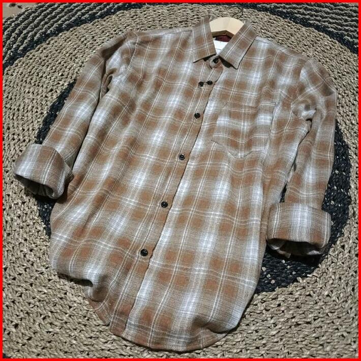 Kemeja Flanel Pria Wanita Lengan Panjan Kotak Original V-neck