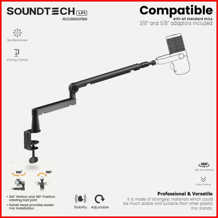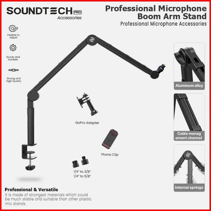 Soundtech Pro Boom Arm Stand 360 Rotate Heavyduty Stand Mic Led Camera