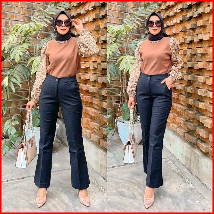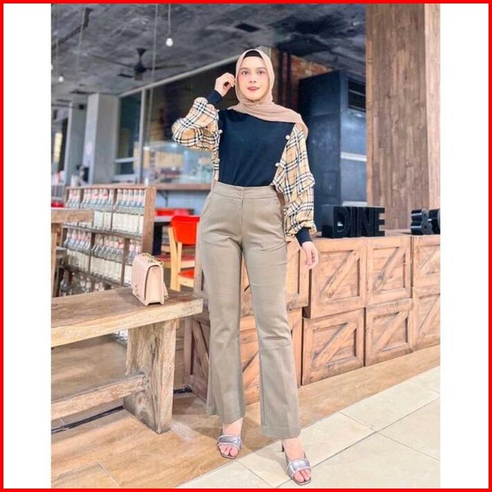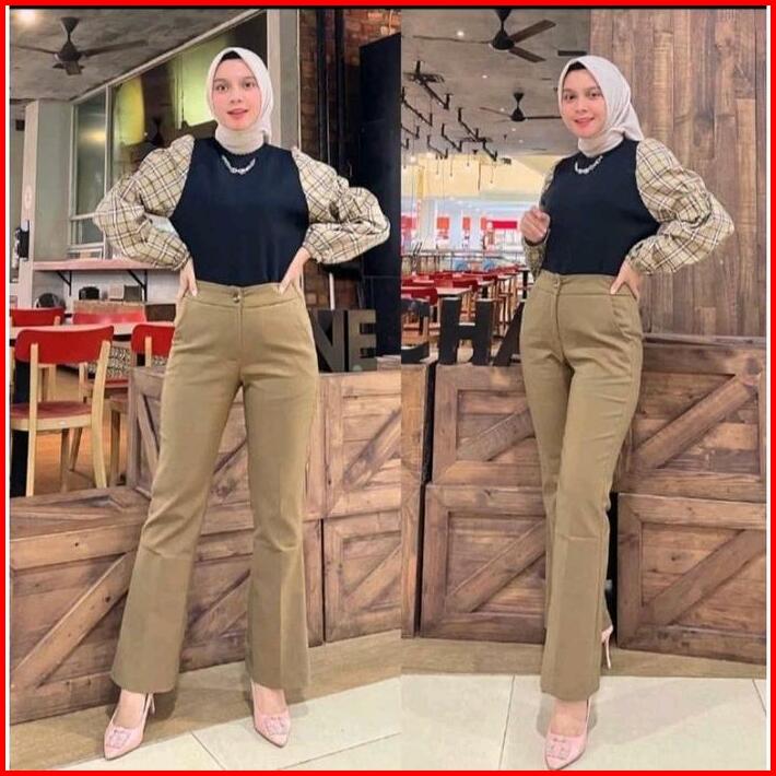 Upgrade Highwaist Hw Cutbray Katun Manggo Strech Premium Celana Kantor Celana Bahan Wanita Celana Kerja Wanita Katun Hit