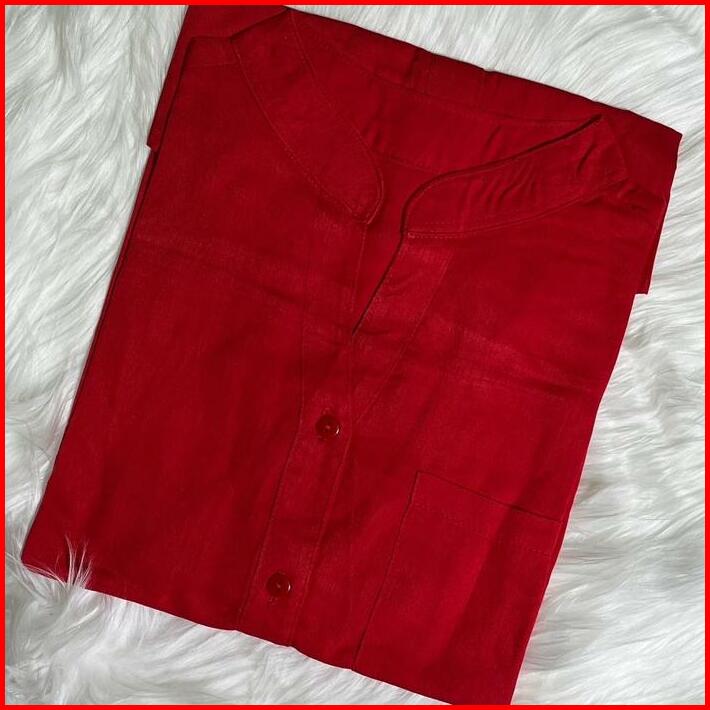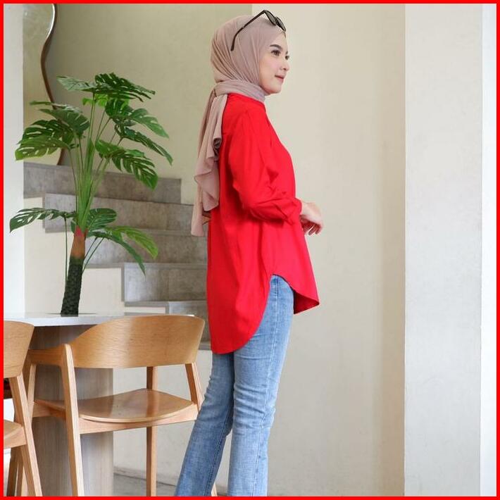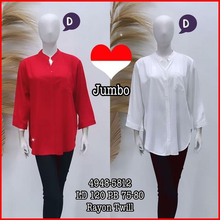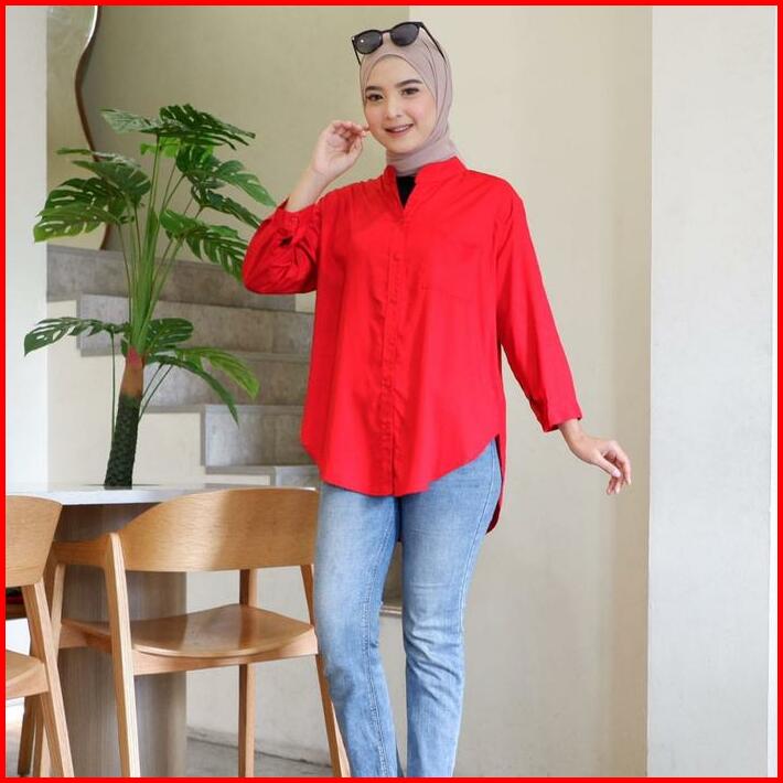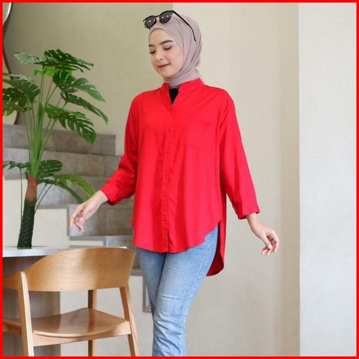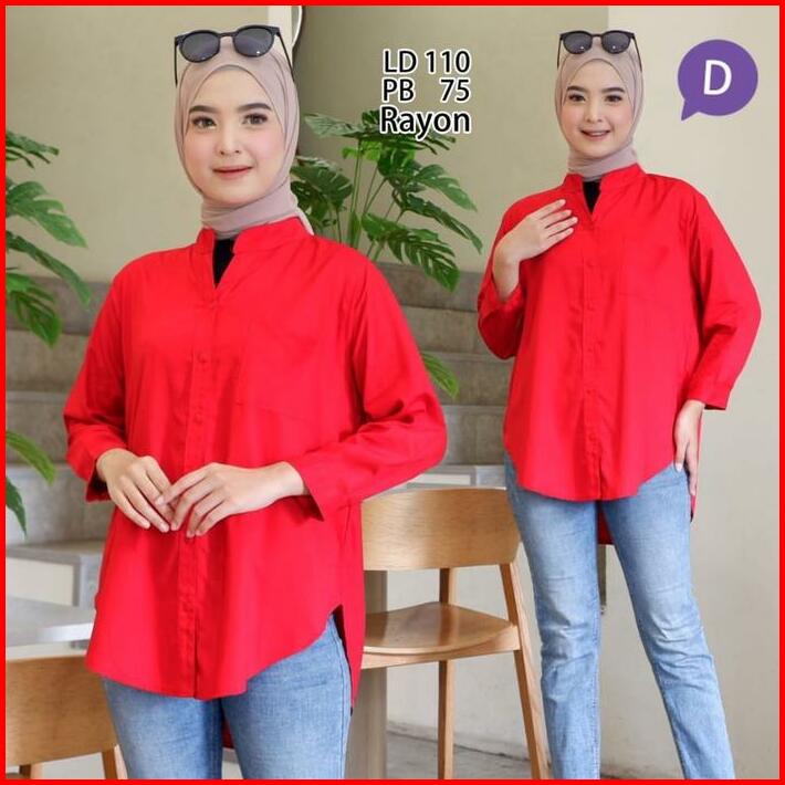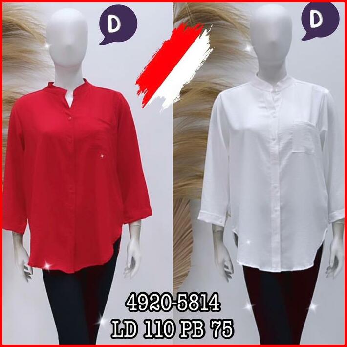 Atasan Wanita Merah Putih Bahan Rayon Twil Premium Krah Shanghai Tangan 7 8 Kemeja Blouse Adem Kemeja Katun Rayon Kemeja