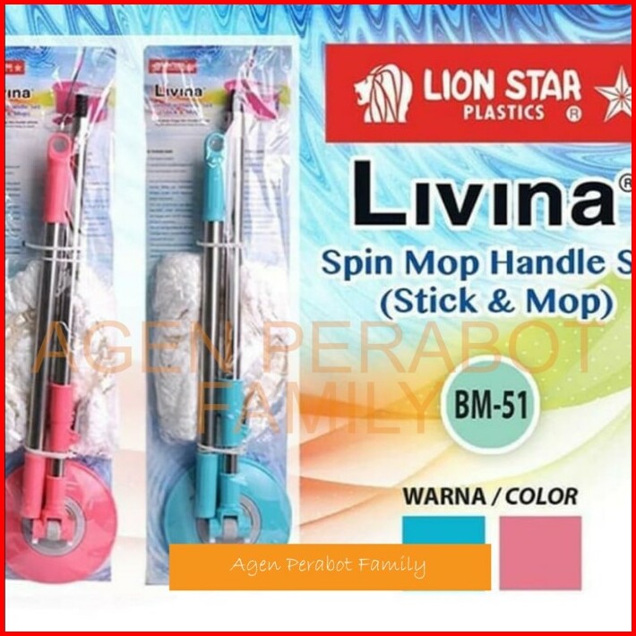 Tongkat Alat Pel Lantai Livina Spin Mop Handle Set Lion Star Bm 51 Biru Kain