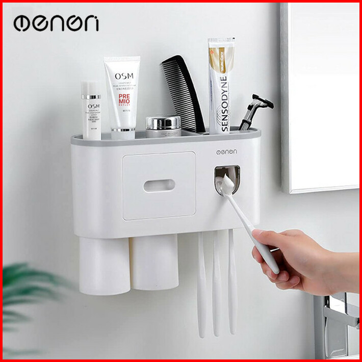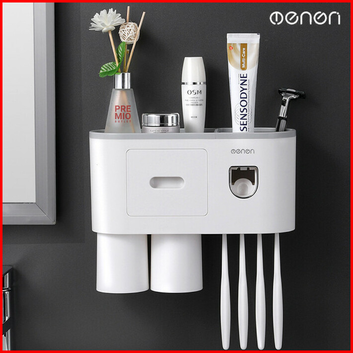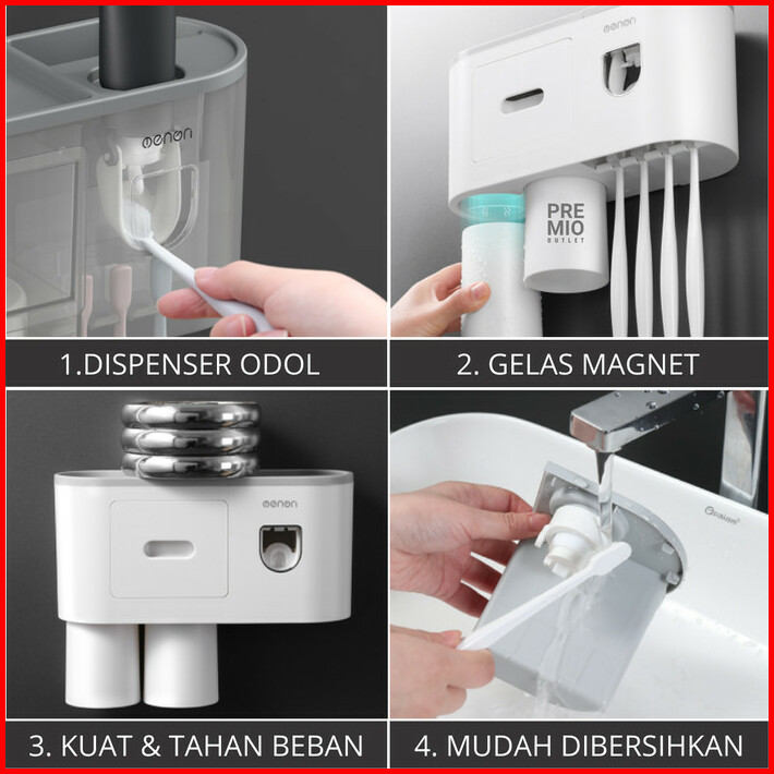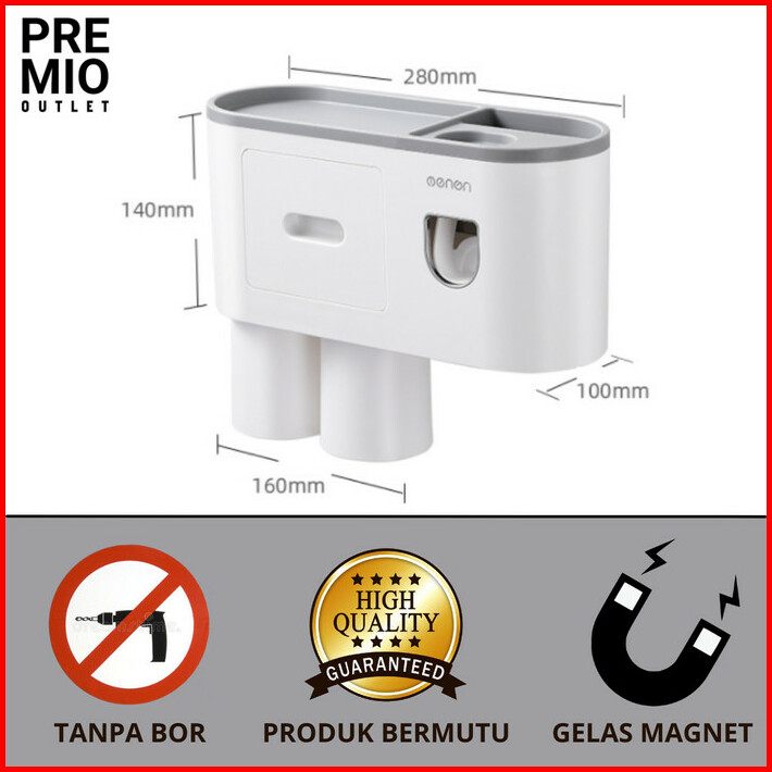 Premio Rak Tempat Holder Sikat Gigi Dispenser Odol Kamar Mandi Tempel