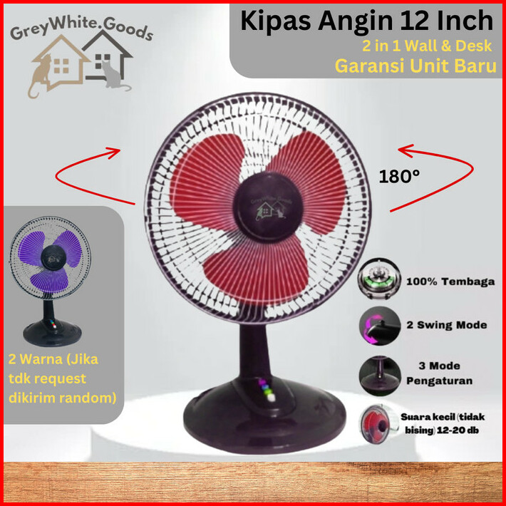 Kipas Angin Duduk 12 Inch Hemat Daya Wall Desk
