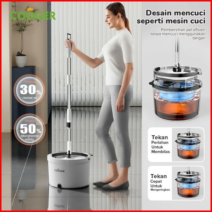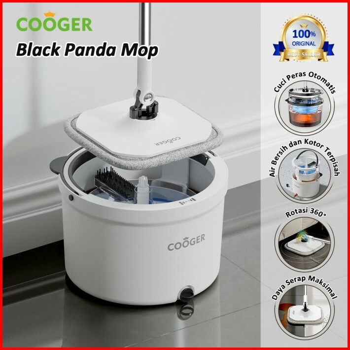 Cooger Pel Panda Spin Mop 2in1 Alat Pel Lantai Otomatis Teknologi Air Bersih Dan Air Kotor Terpisah