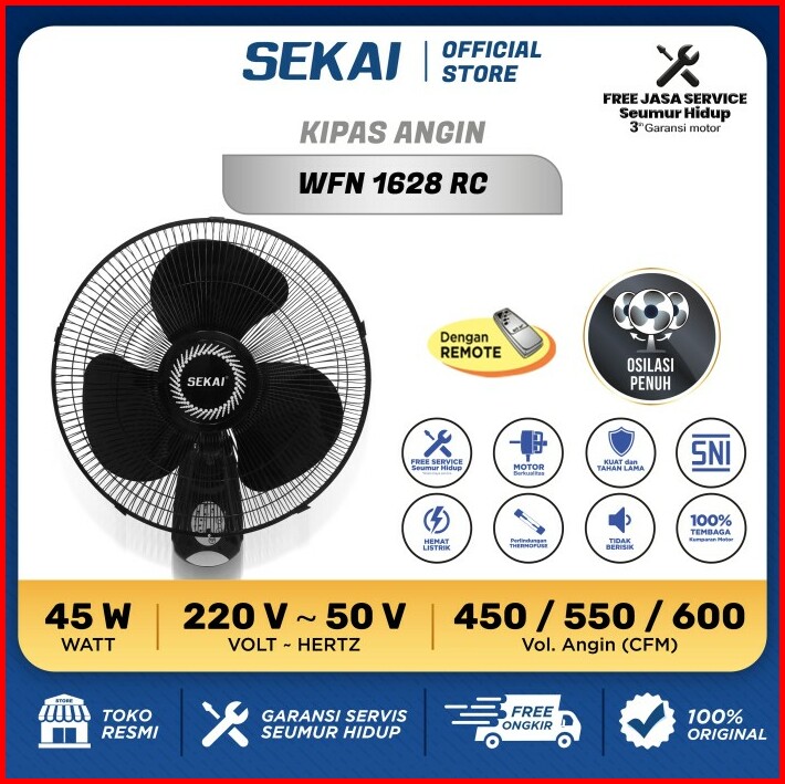 Sekai Kipas Angin Dinding Remote Wfn 1628 Rc