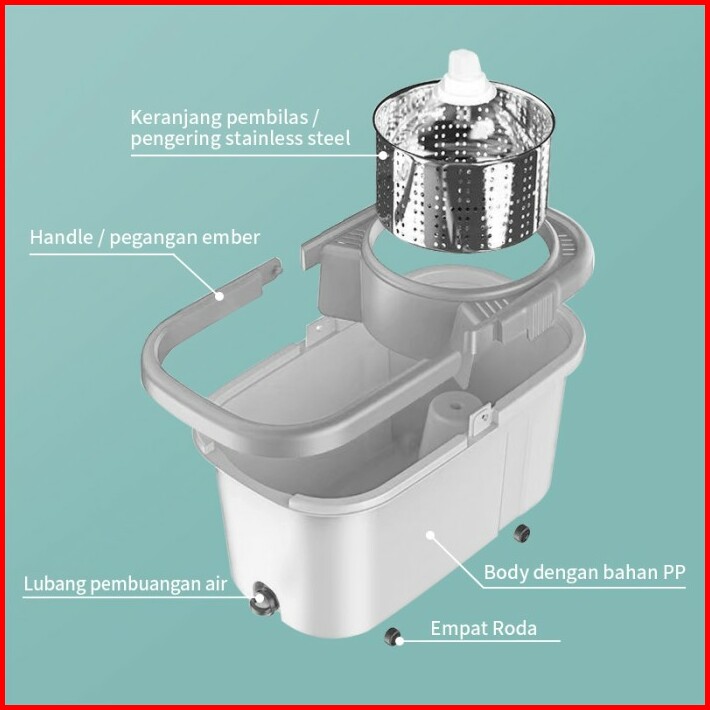 Gm Bear Alat Pel Lantai Praktis 1966- Spin Mop Aclima Grey