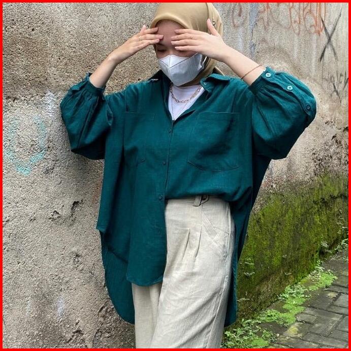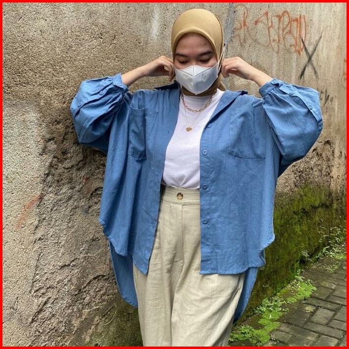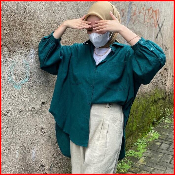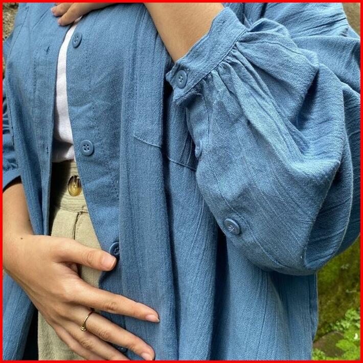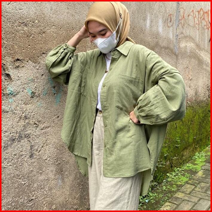 Kemeja Linen Balon Kancing Oversize Atasan Wanita Crinkle