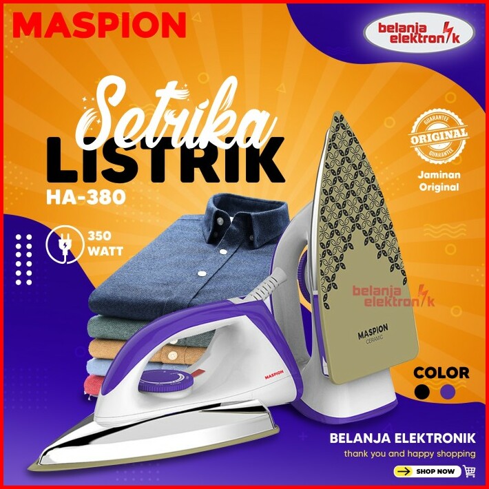 Setrika Listrik Maspion Ha-380 Dengan Ceramic Coating Gosokan Baju