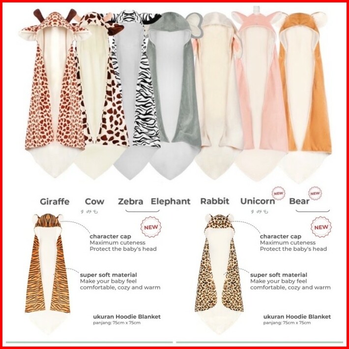 Sumimo Baby Newborn Hoodie Blanket Selimut Topi Bayi Karakter