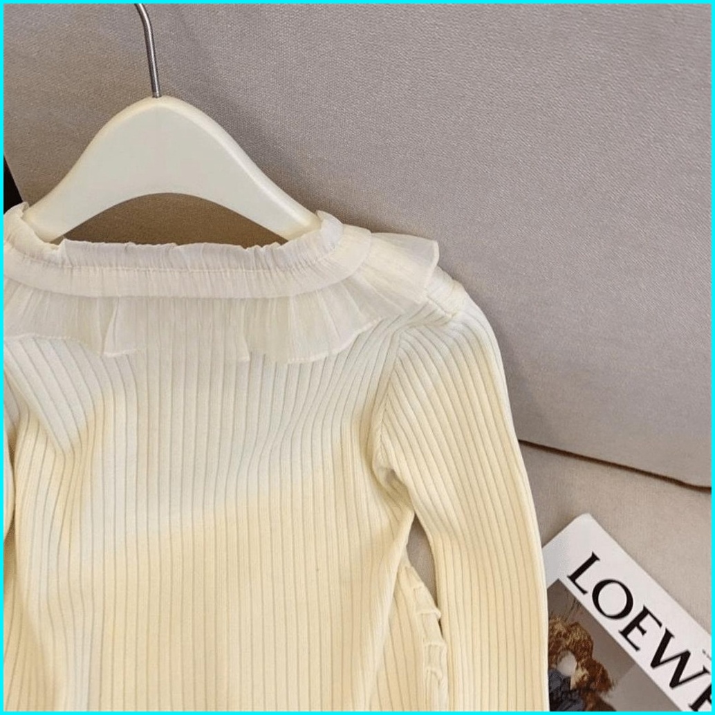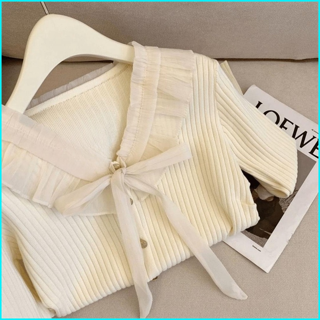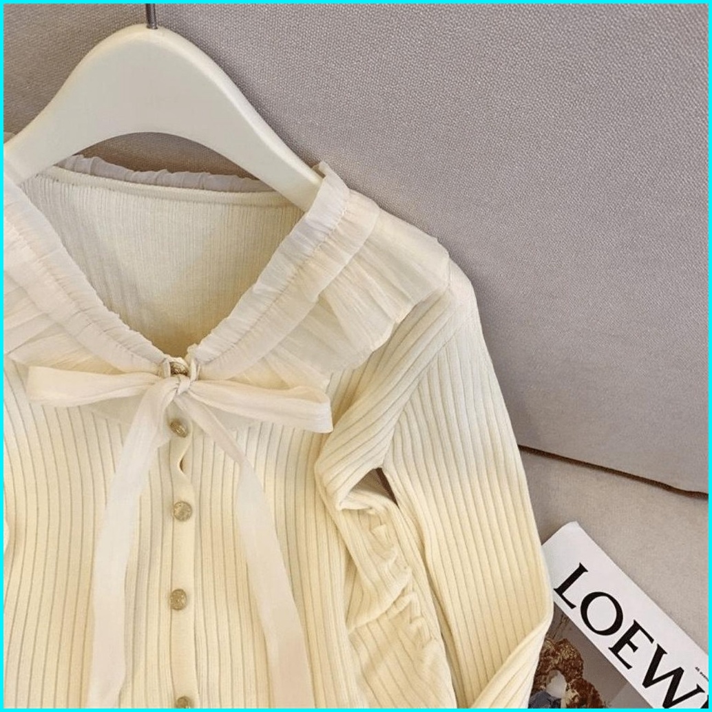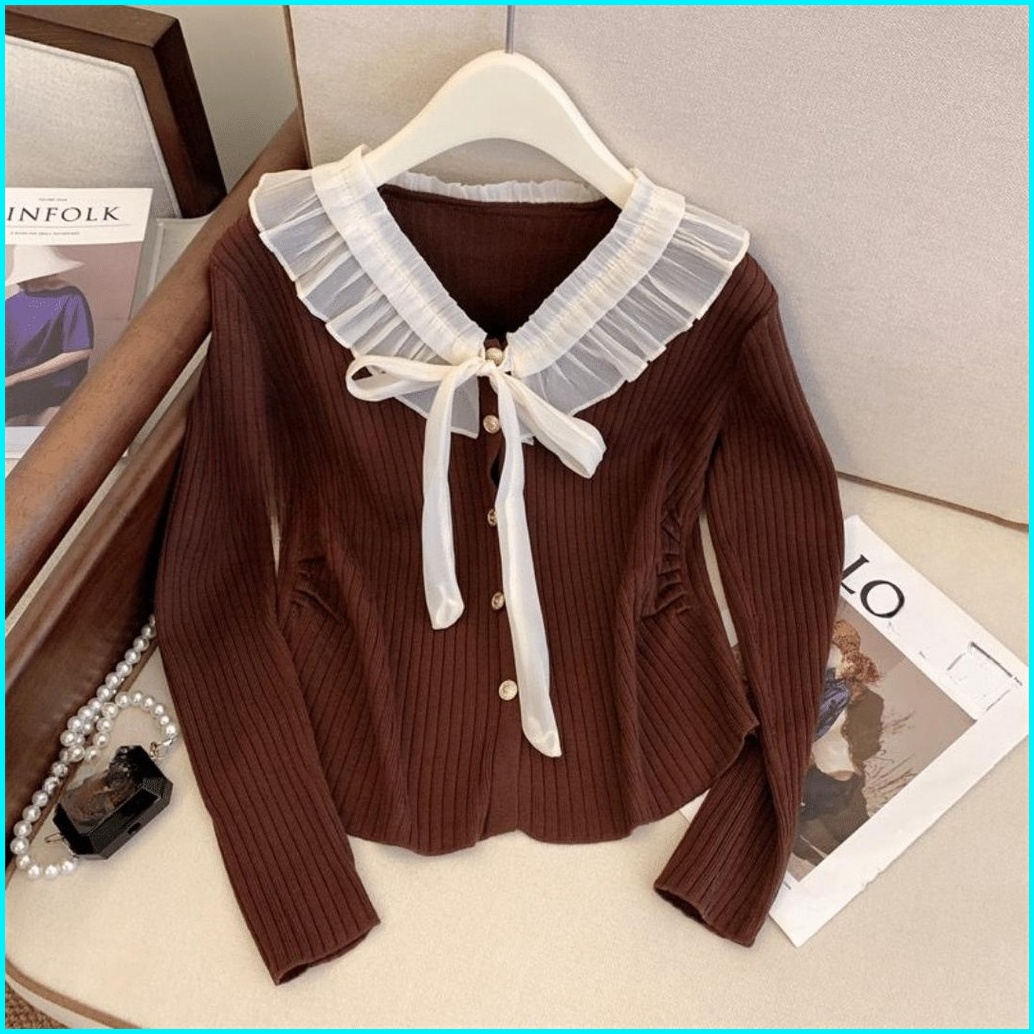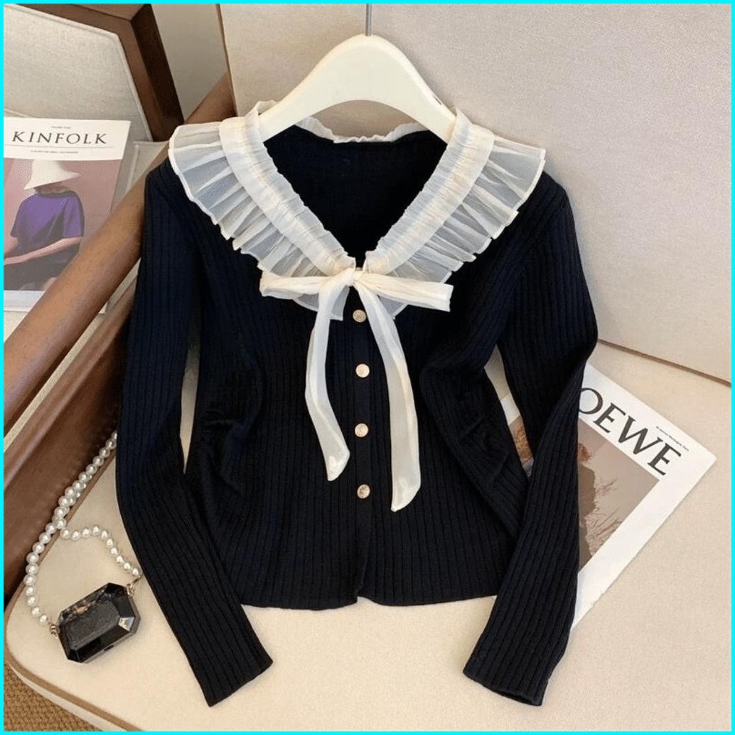 Atasan Rajut Wanita Premium Leher Renda Pita Round Neck Simple