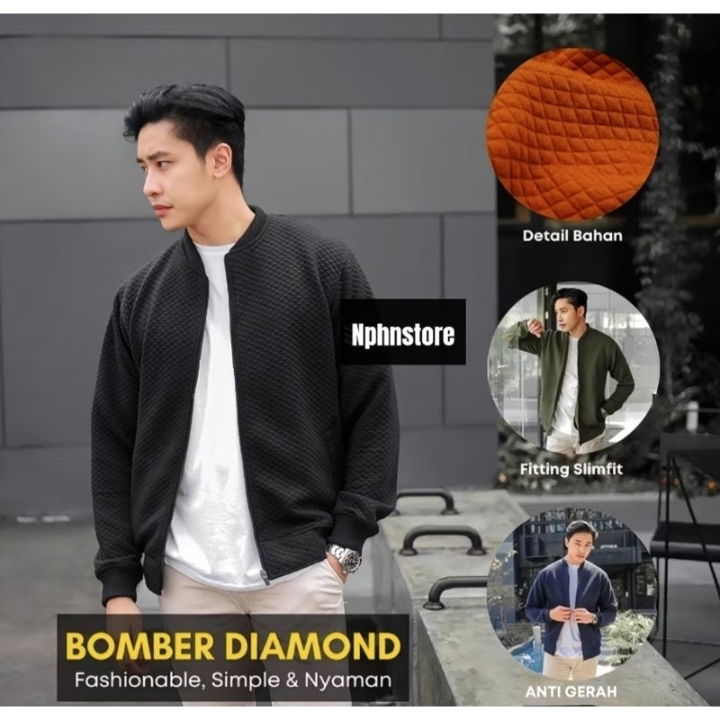 Jaket Comfy Zipper Jumbo Pria Wanita Jacket Bomber Diamon knitt Size M L XL XXL XXXL