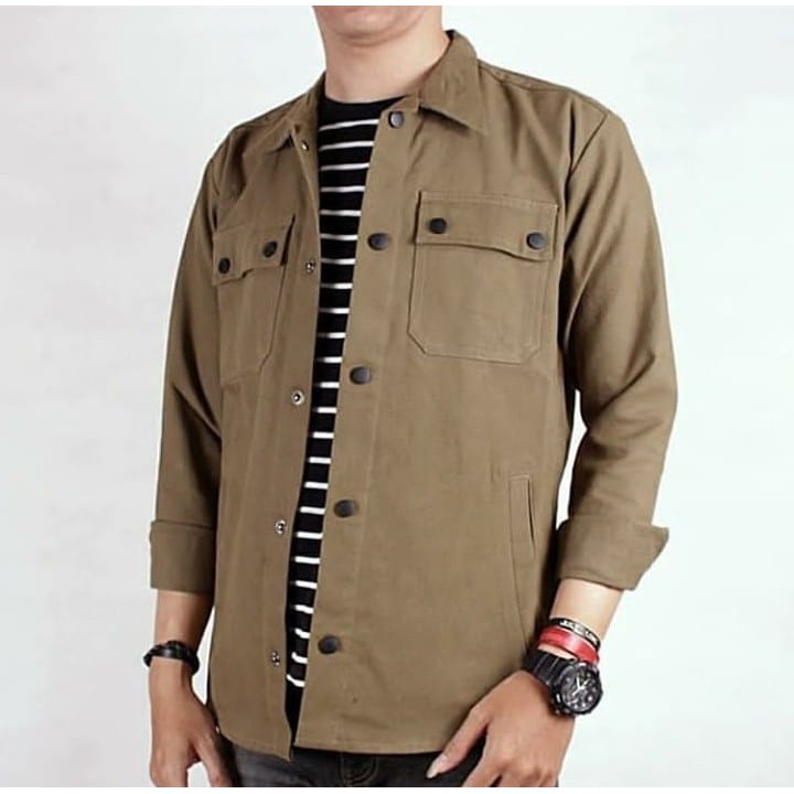 Jaket Semi Parka Casual Trucker Bahan Canvas Pria