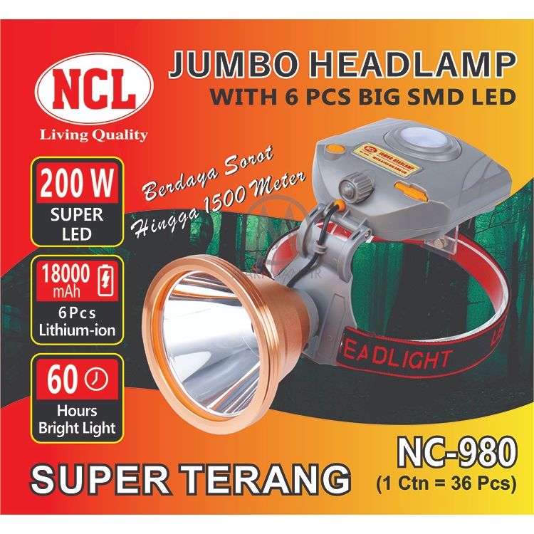 Senter Kepala Premium 200 Watt Super Terang Jumbo NC 980