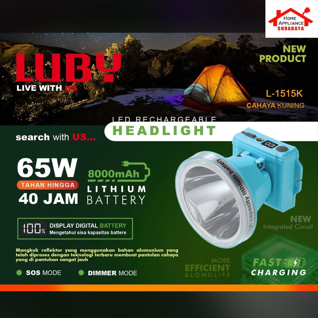 Luby Senter Kepala Cas LED 65W - 65 Watt 8000mAh L-1515L Cahaya Putih / L-1515K Cahaya Kuning Tahan 40 Jam - L 1515 L /