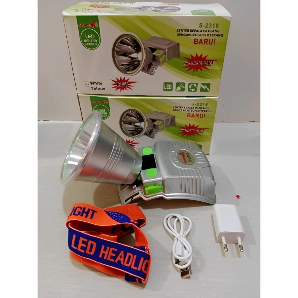Senter Kepala Premium 400W | 10.000mAh SUNPRO Cahaya Putih / Kuning Tahan 18 Jam | S-2318 | FMS