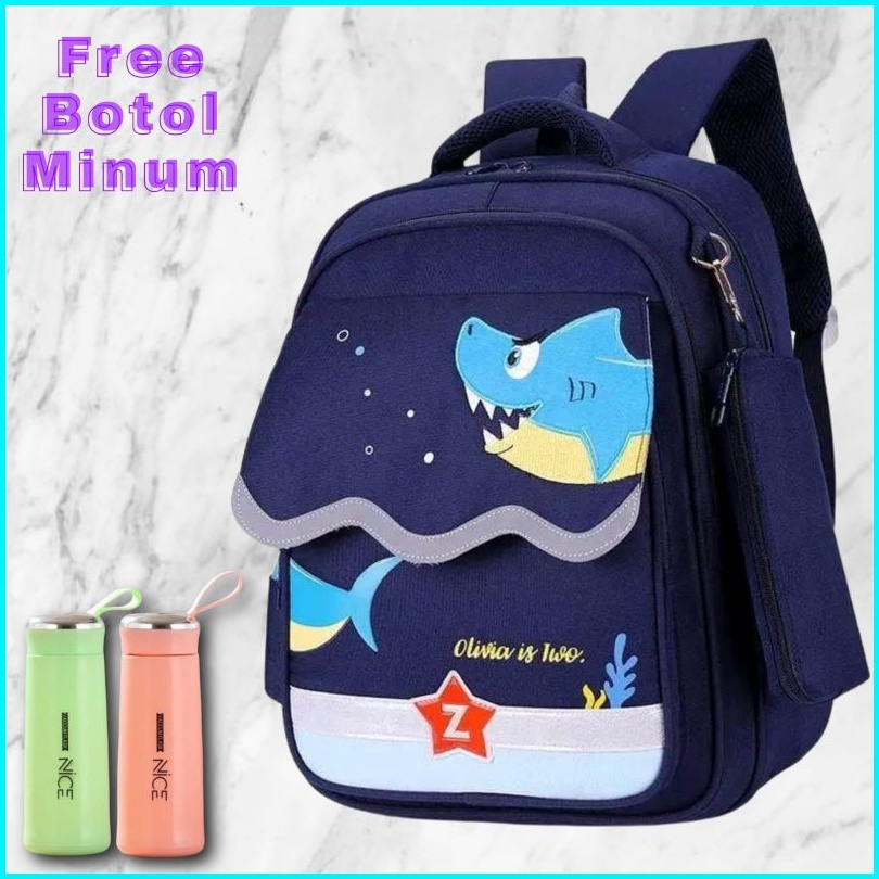 Winben Fashion-tas Ransel Anak Sekolah Laki Laki Sd Tk Paud Motif Kartun Hiu