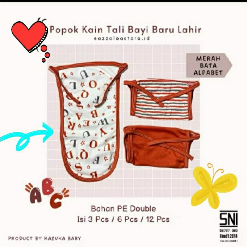 6Pcs/12Pcs Popok Kain Tali Bayi Baru Lahir Seri Merah Bata Alphabet Bayi Newborn 0-3Bulan