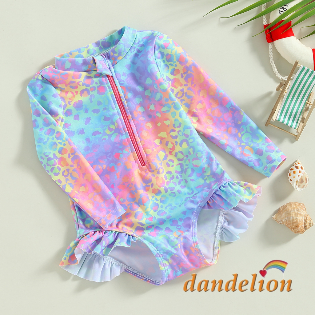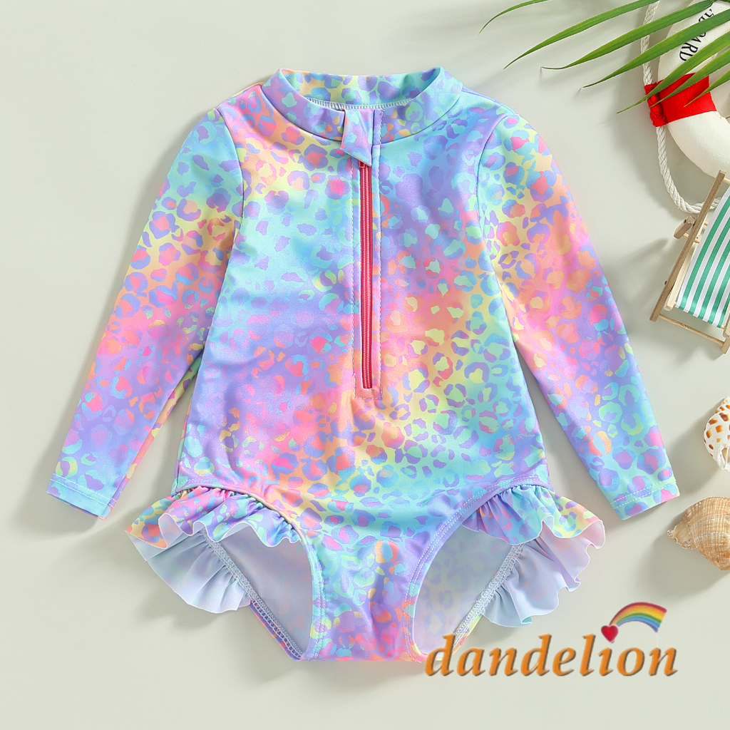 Pakaian renang bayi perempuan anak-anak pakaian renang jumpsuit lengan panjang kerut motif sisik ikan pakaian renang pak