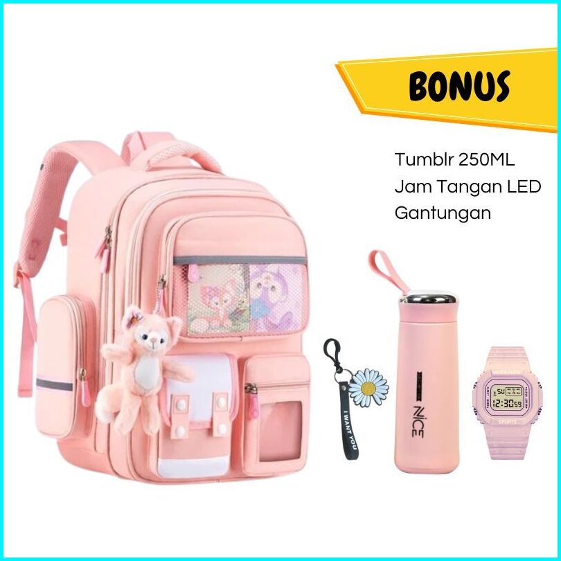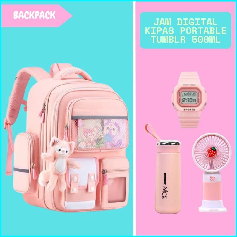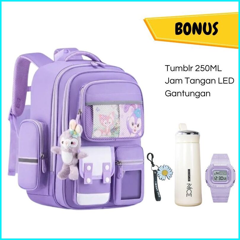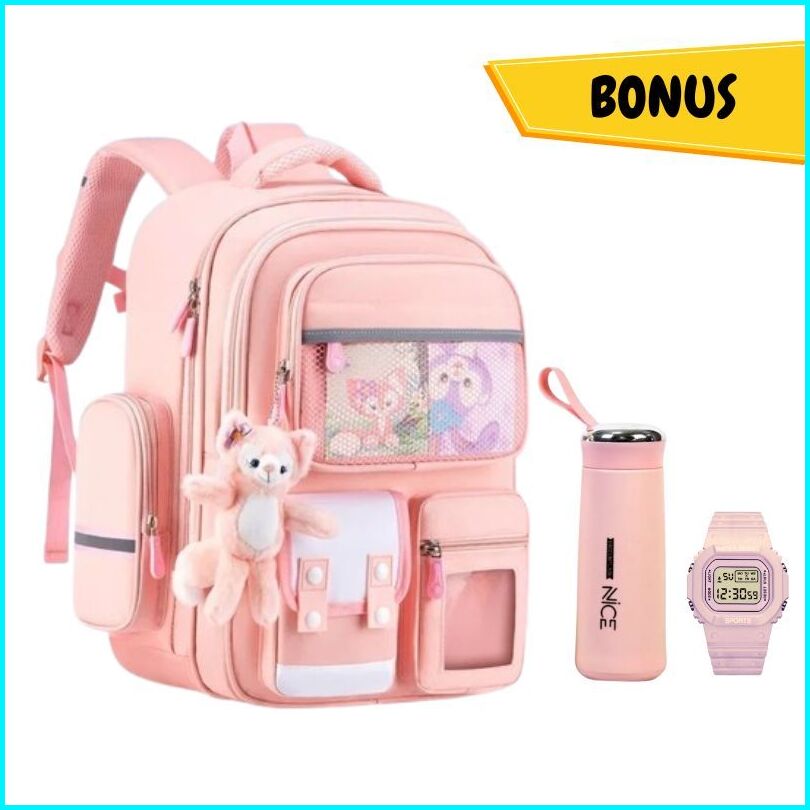 Tas Ransel Anak Sekolah Motif Lucu Premium Free Botol Minum Jam Tangan Dan Gantungan Lucu 4 In 1