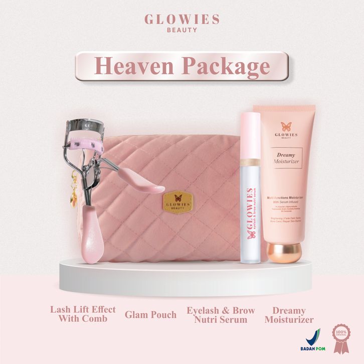 GLOWIES PACKAGE Heaven Package Dreamy Moisturizer Glowies Beauty Eyelash & Brow Nutri Serum Lash Lift Effect Glam Pouch