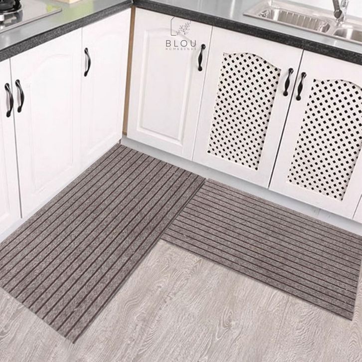 Karpet Lantai Dapur Anti-Slip Premium Desain Minimalis Keset Anti-Slip Serbaguna Modern Desain Garis Elegan Nyaman Set