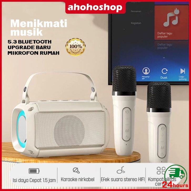 Speaker bluetooth 2Mic 1 set karaoke speaker ktv Cute Wireless Lucu Portabel Luar Ruangan Speaker Nirkabel