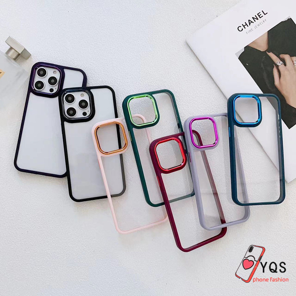 Plating Acrylic Clear Case For iPhone 11 13 16 15 14 12 Pro Max 11 16 Pro XR 7 8 Plus X XS Max Metallic frame Anti Shock