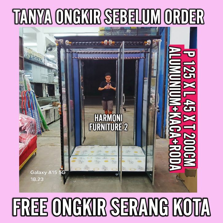 LEMARI PAKAIAN ALUMUNIUM FULL GANTUNG RODA FREE ONGKIR SERANG KOTA