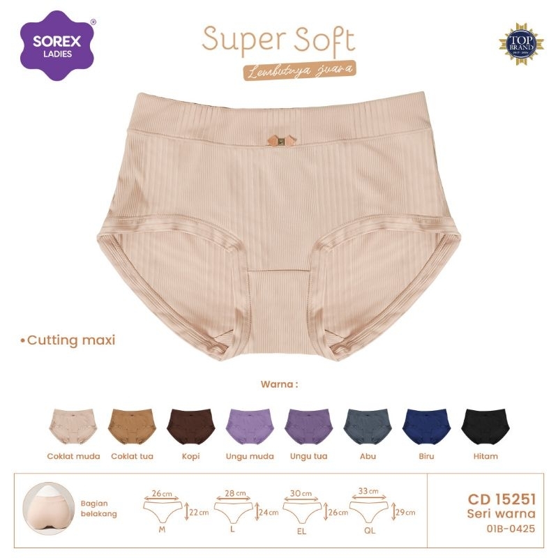 Sorex (3pc, 6pc, 12pc) CD/Celana Dalam Wanita 15251 Maxi Highwaist Supersoft Lembut Nyaman