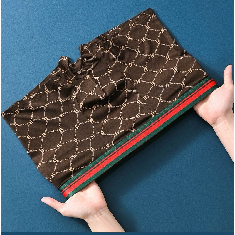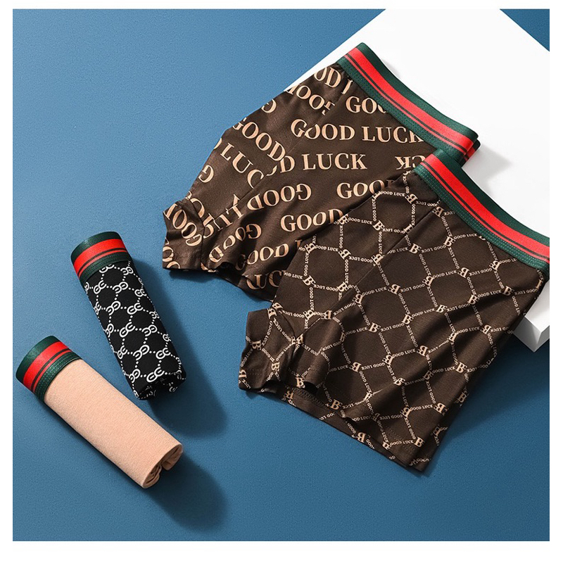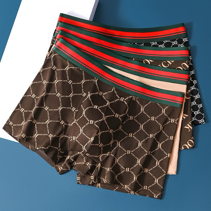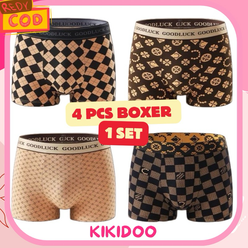 Kikidoo 4 Pcs Boxer Spandex Cowok Warna Coklat Good Luck Bahan Adem BX16