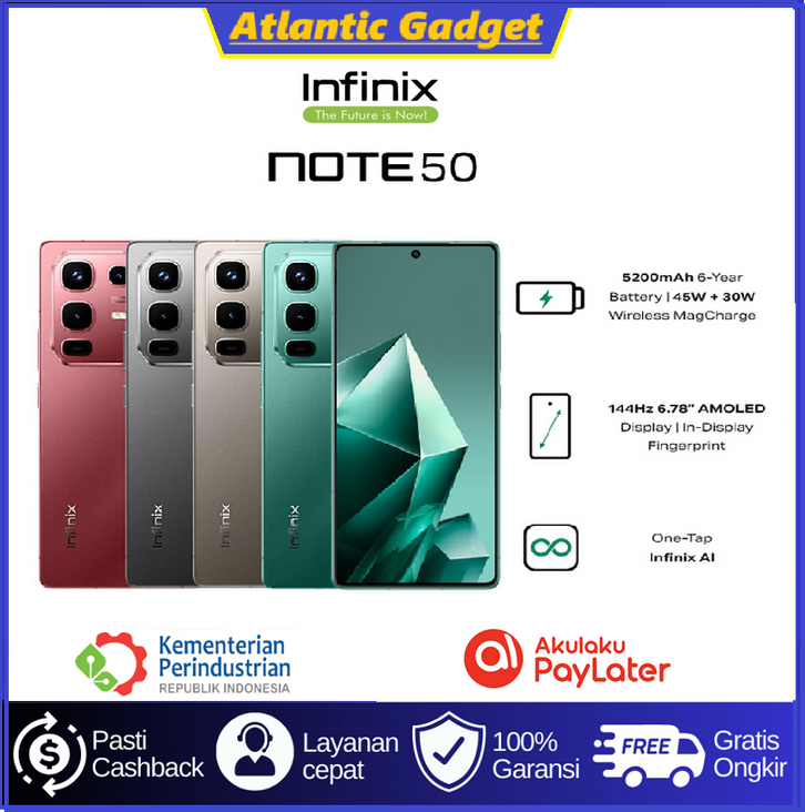 Infinix Note 50 RAM 8/256GB | MediaTek Helio G100 Ultimate | Layar 6.78" AMOLED 144Hz | Baterai 5200mAh 45W | 50MP OIS