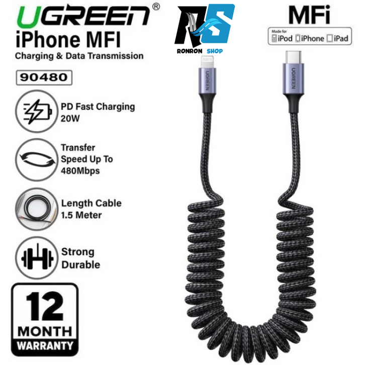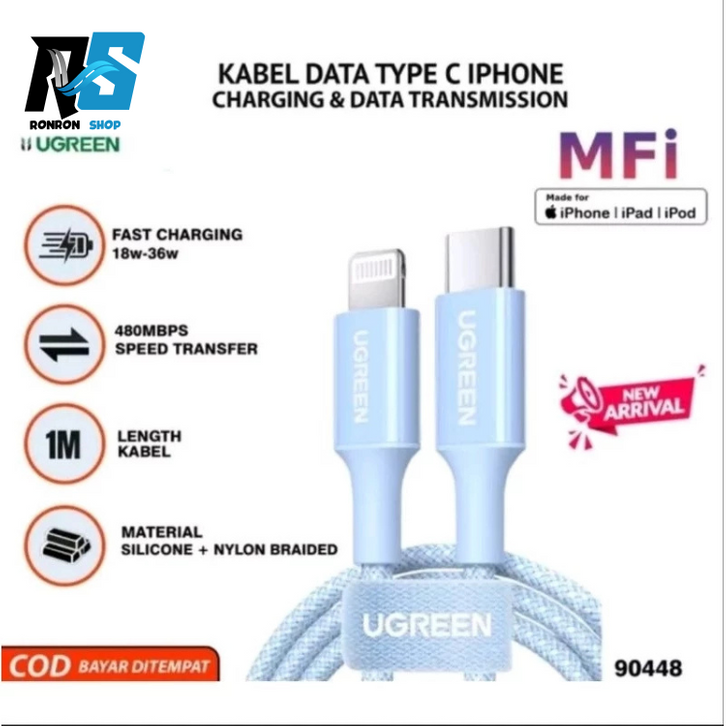 Ugreen USB C to Lightning MFi for iPhone 14 13 12 11 8 X XR XS Max - Ugreen Kabel Nylon / Silikon Lightning Original