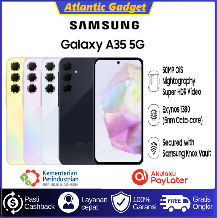 Samsung A35 5G 8/256GB Garansi Resmi | Exynos 1380 | Layar 6.6" Super AMOLED 120Hz | Kamera 50MP | IP68 Tahan Air & Debu