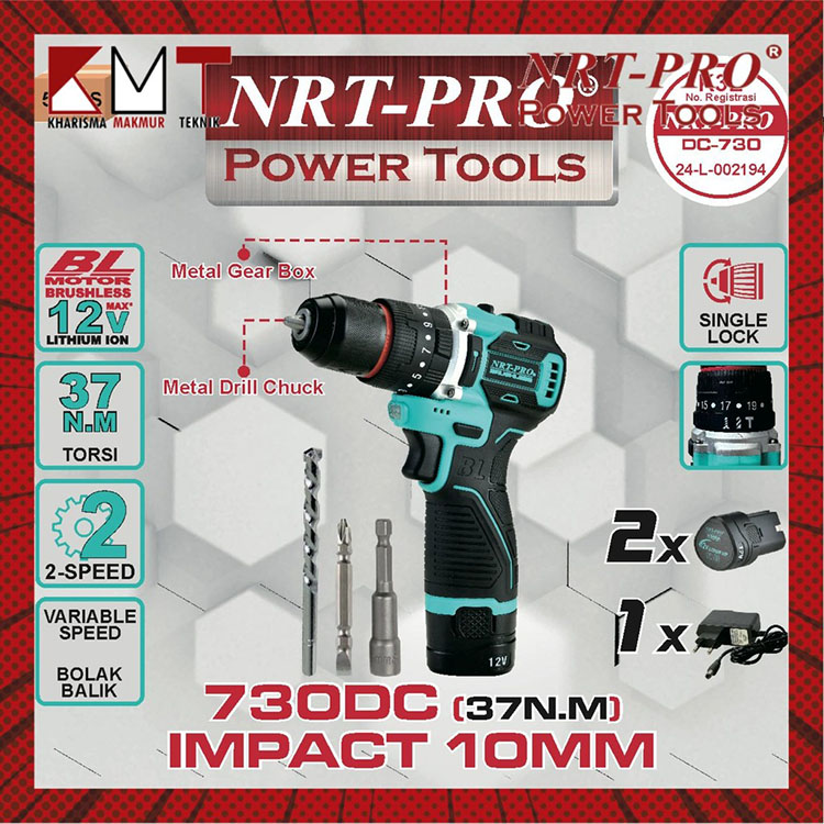 BOR CORDLESS / BOR BATERAI BRUSHLESS SCREW DRILL HAMMER 12V 10MM 730 DC NRT-PRO