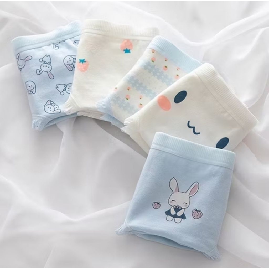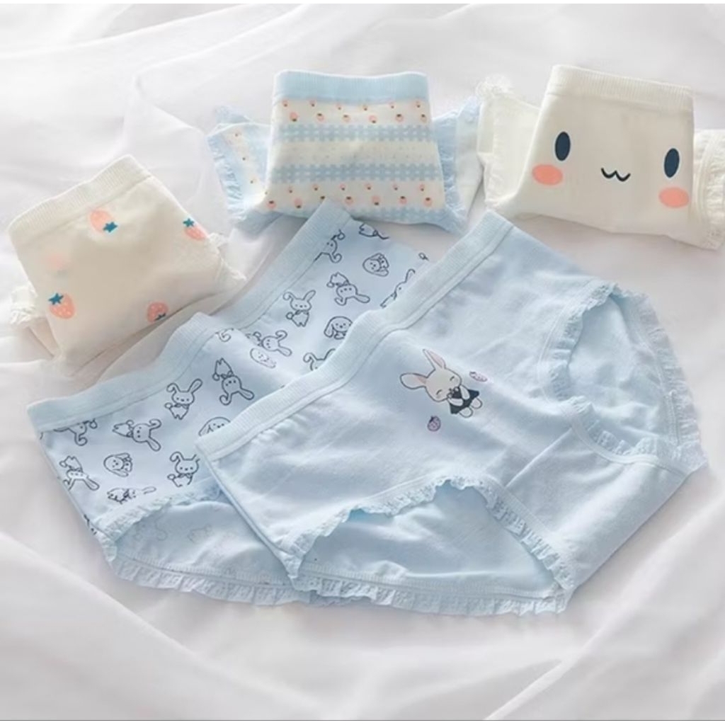 [1 Set 5 Pcs] Celana Dalam Wanita Dewasa Motif Blue Rabbit Imut Katun Lembut Undies Premium High Quality F-012 FS